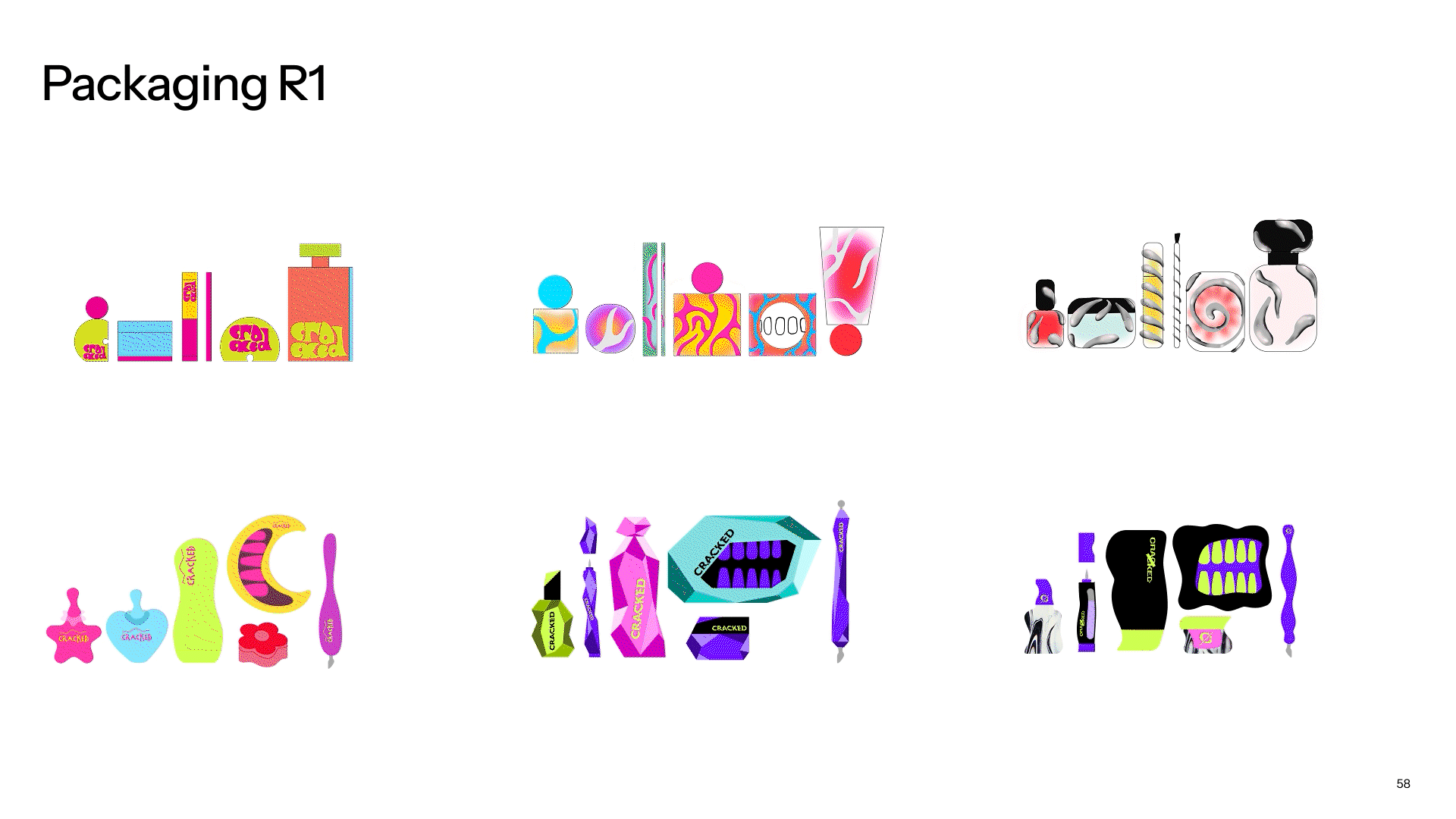 Cracked is a collaborative rebrand project that I am currently developing alongside graphic designer, Carlita Bryant (carlitabryant.com), created to reimagine the indie nail polish brand, Cracked, through a louder, more expressive lens. The current branding lacks a clear voice, but its copy hints at a rebellious, artistic edge that deserves to take center stage. Together, Carlita and I are elevating that voice and shaping a brand that feels experimental, bold, future-forward, and deeply inclusive. Our goal is to create packaging and storytelling that resonate with the indie nail polish and nail artist community, celebrating self-expression, color, and the unapologetic energy that makes Cracked so unique.