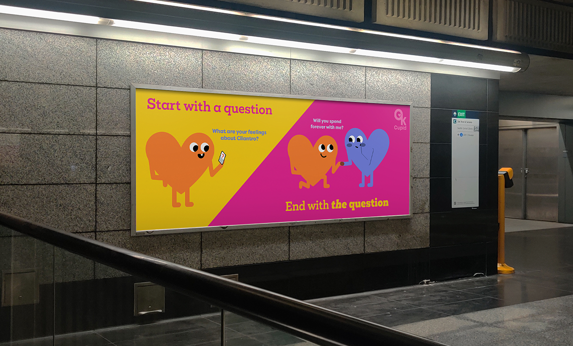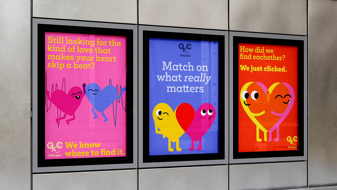 This rebrand celebrates the inclusive and heart-warming spirit of OkCupid, rooted in the belief that everyone deserves to feel seen, valued, and loved. Inspired by the brand’s commitment to representation as the first dating app to offer more than 13 gender options, the new identity captures the giddy feeling of falling in love and the magic of two people coming together to form something stronger than they were alone. Through lively color, whimsical storytelling, and playful design, it invites users to step into a romantic world where they can see themselves in the story and feel at home in their journey to find true love.